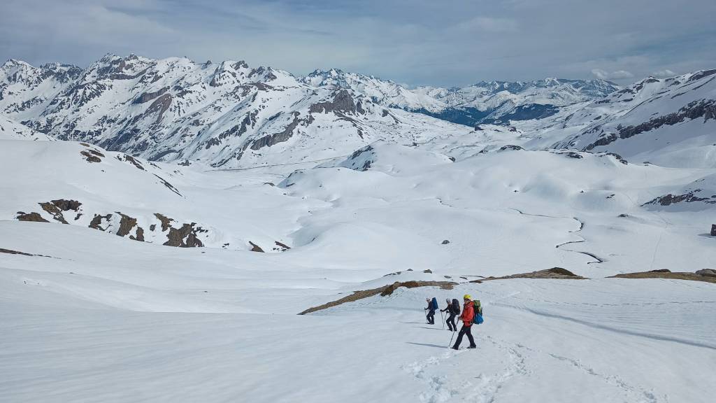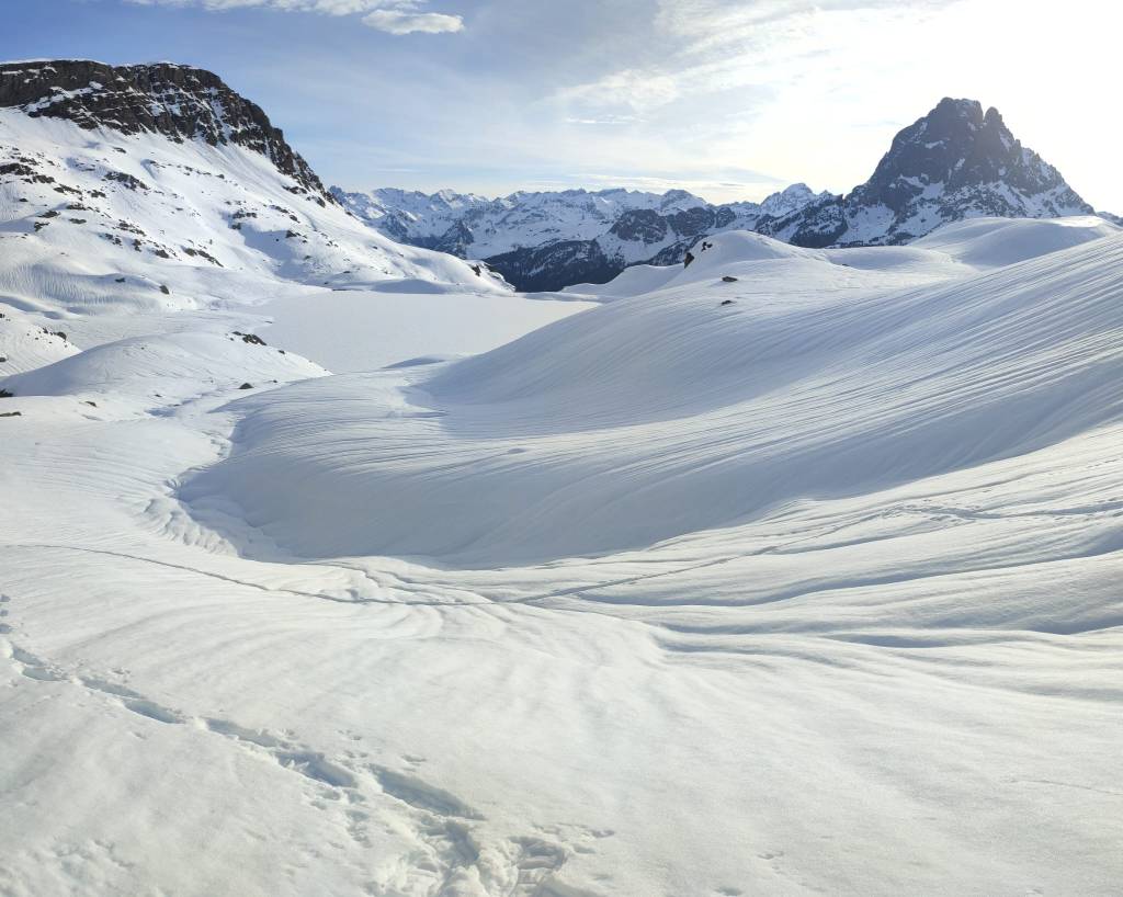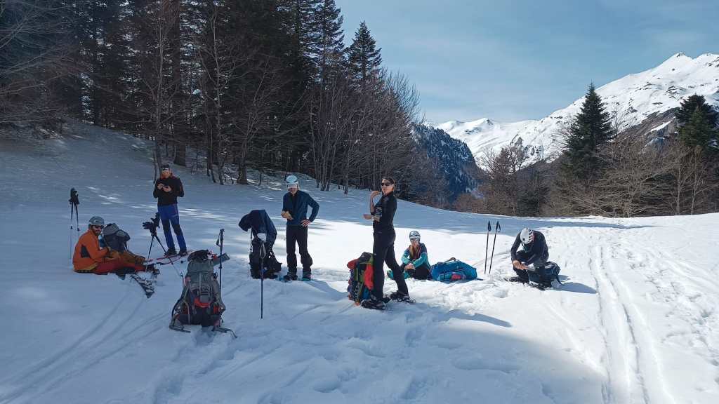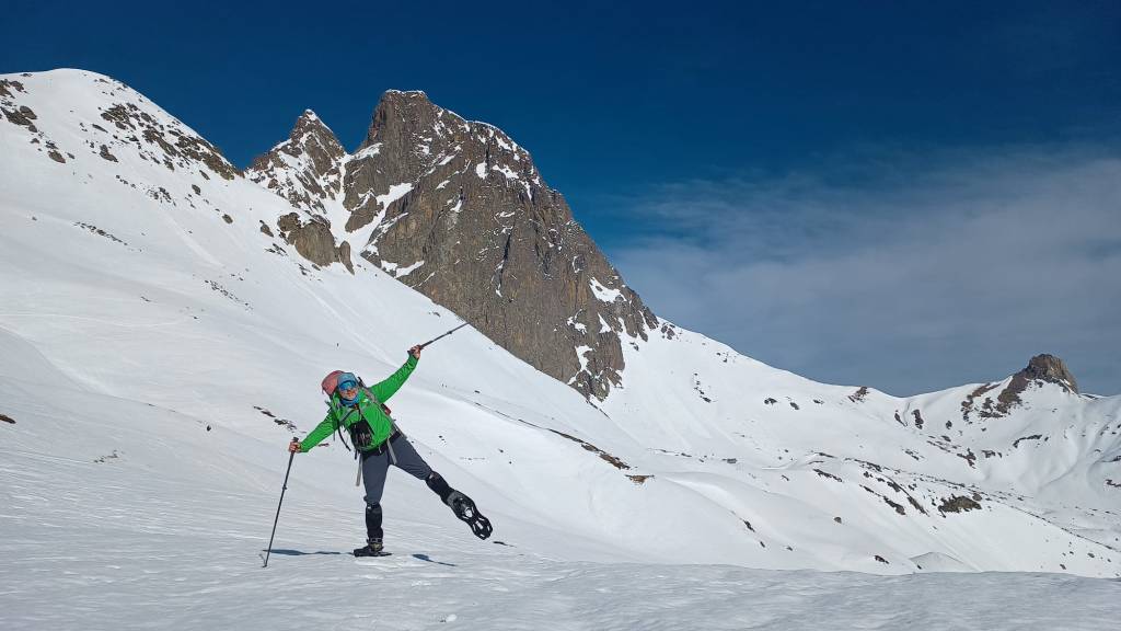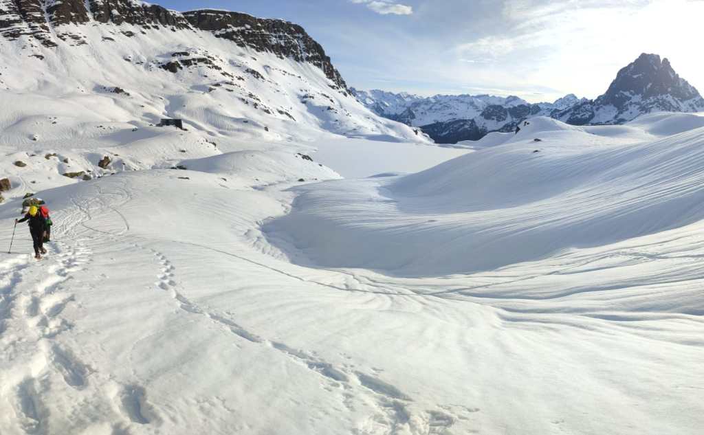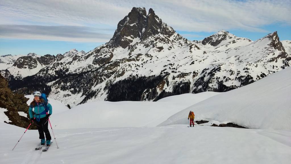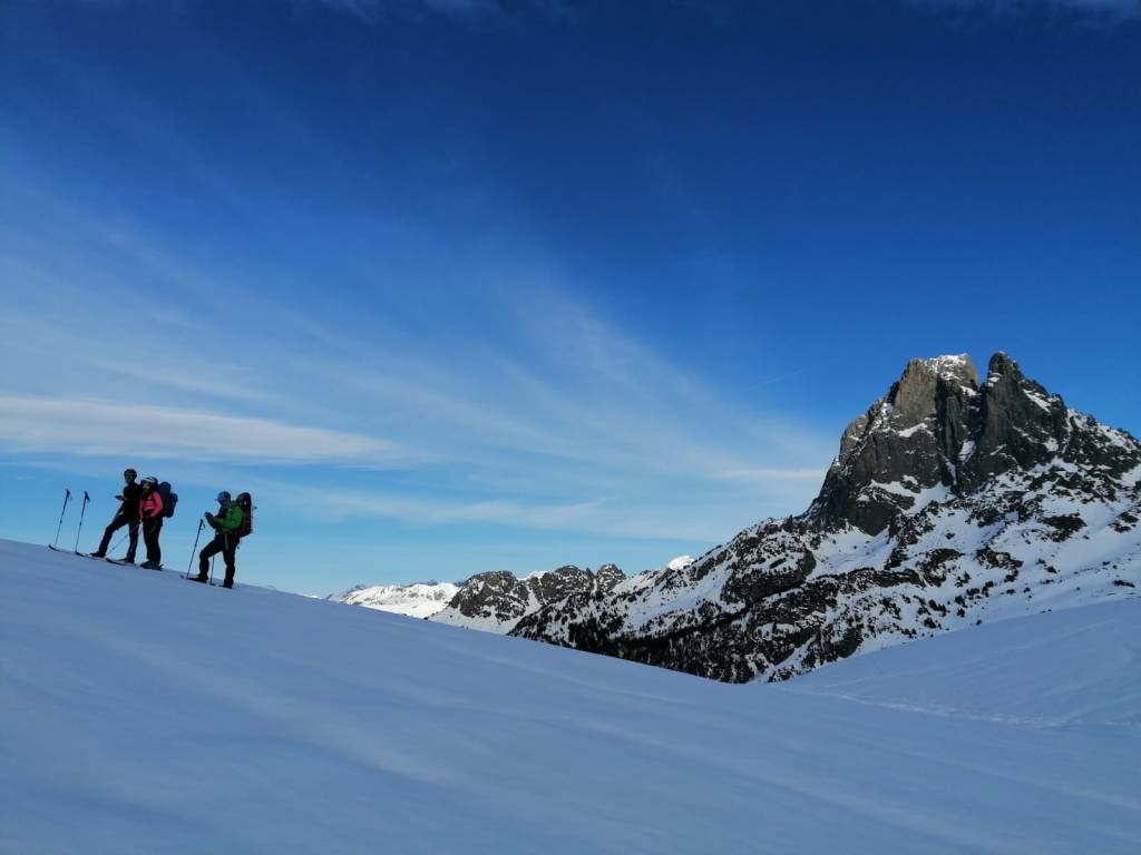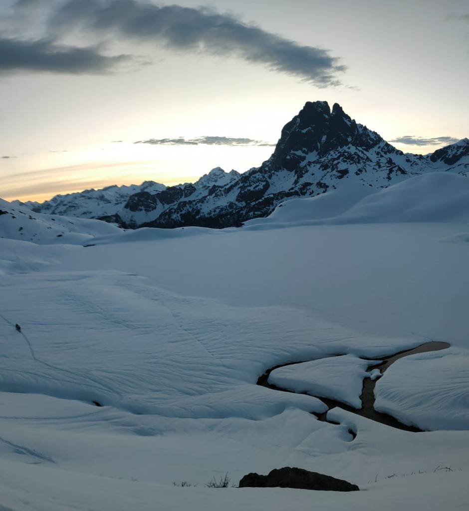 Después de varios retrasos por la sucesión de frentes coincidentes con los fines de semana, por fin se abrió la ventana de oportunidad para aventurarnos en el Tour al Midi D’Ossau en condiciones invernales. ¡Y qué condiciones! No nos quitamos las raquetas o los esquís de montaña en los dos días de ruta.