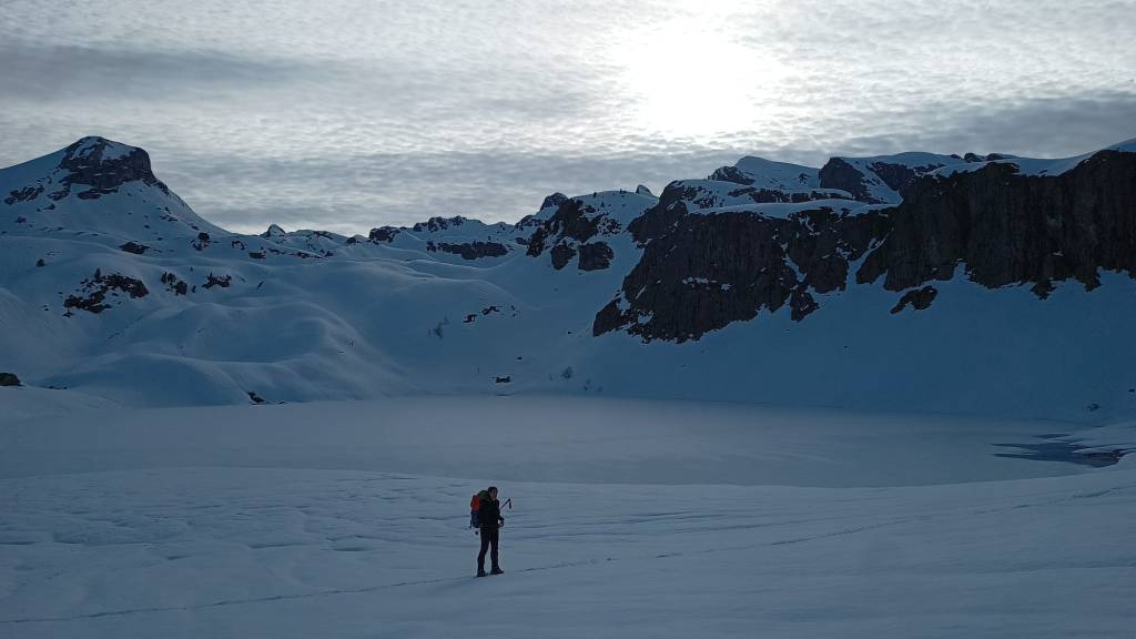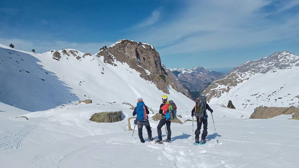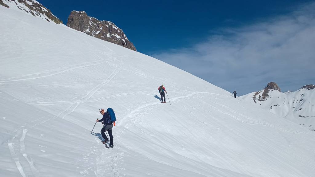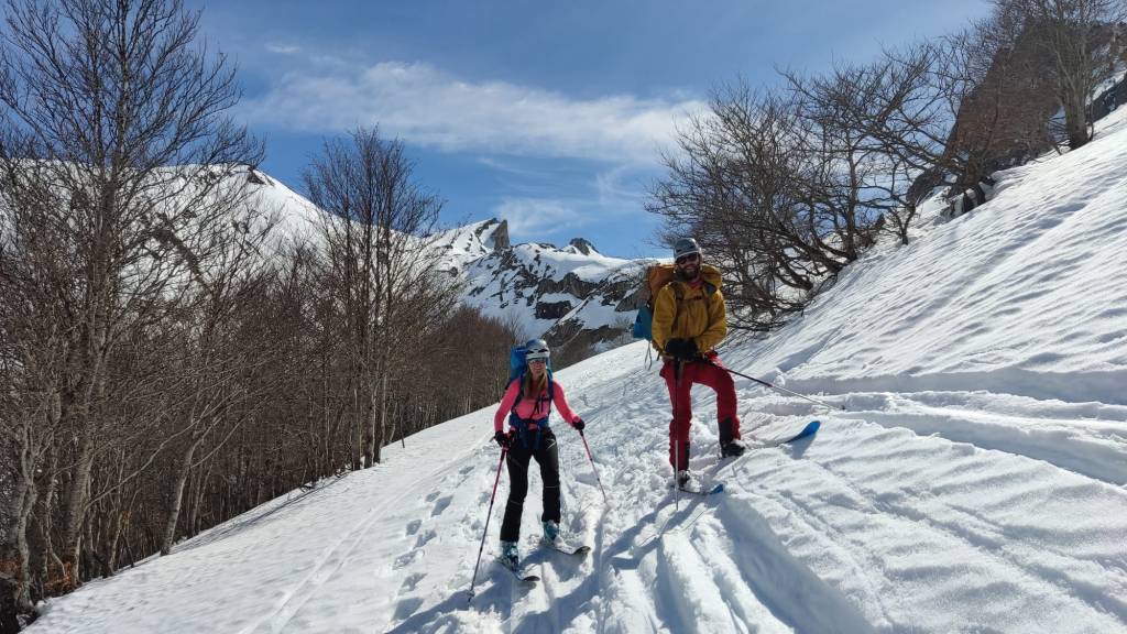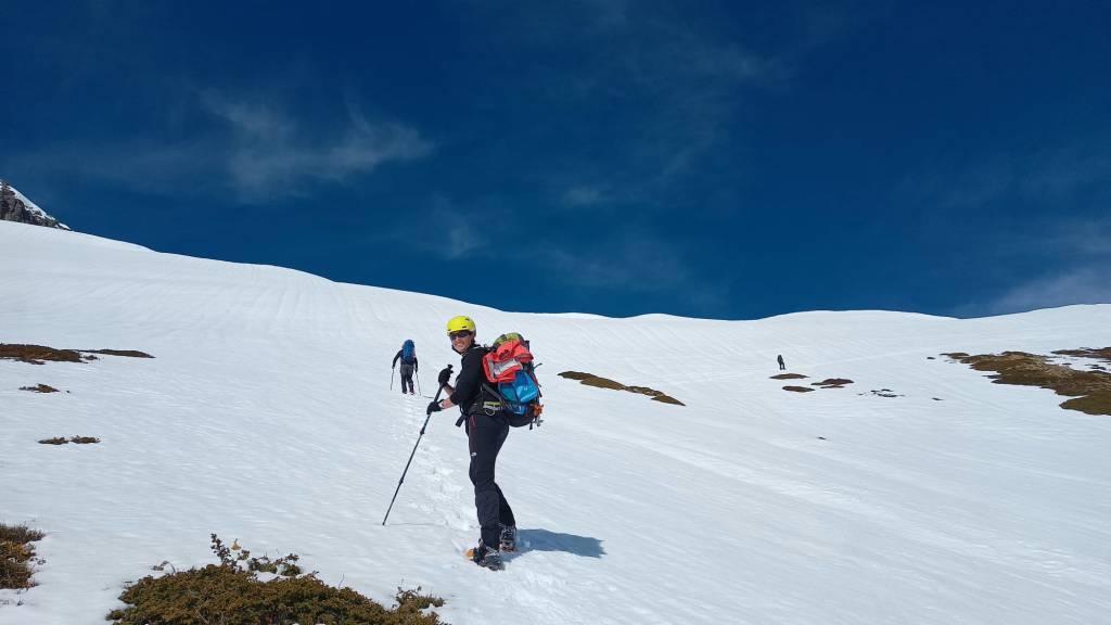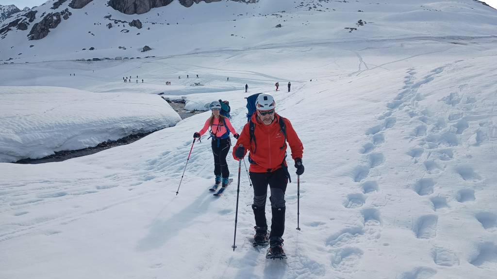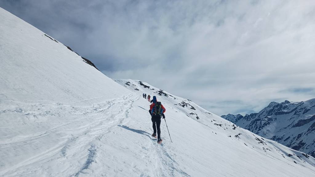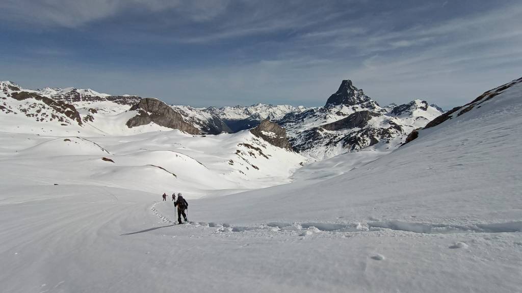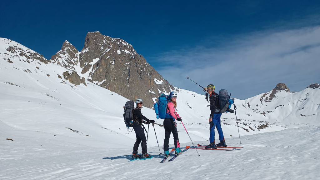 Después de varios retrasos por la sucesión de frentes coincidentes con los fines de semana, por fin se abrió la ventana de oportunidad para aventurarnos en el Tour al Midi D’Ossau en condiciones invernales. ¡Y qué condiciones! No nos quitamos las raquetas o los esquís de montaña en los dos días de ruta.