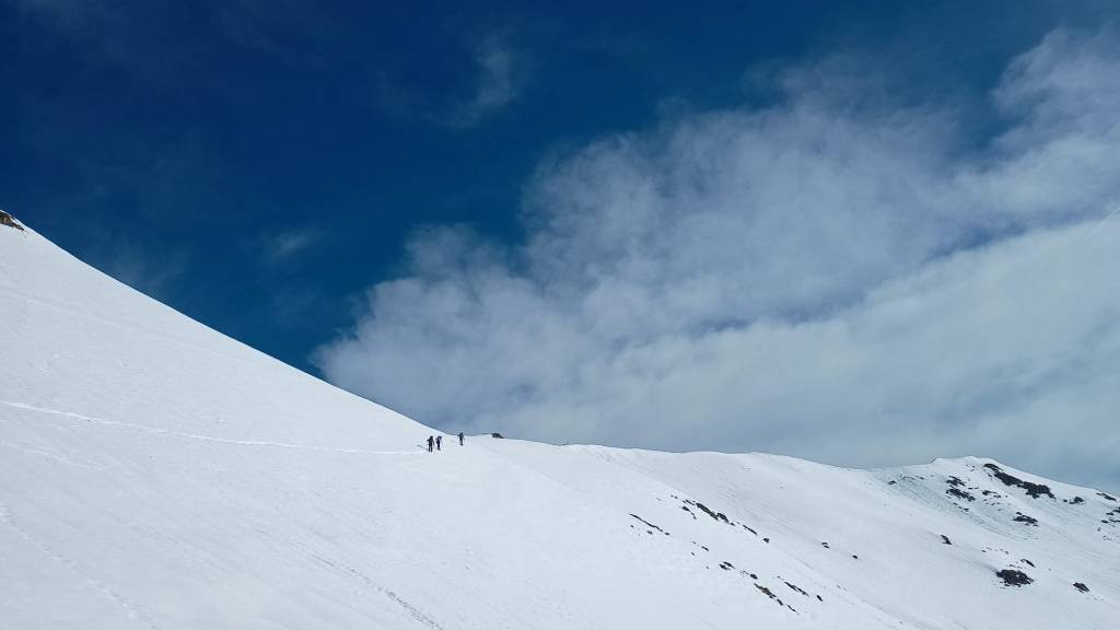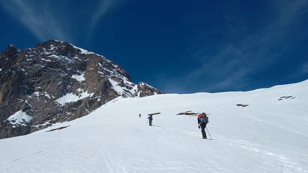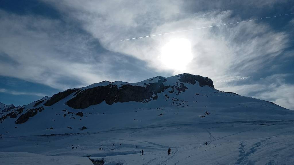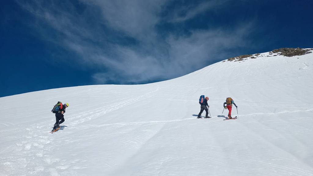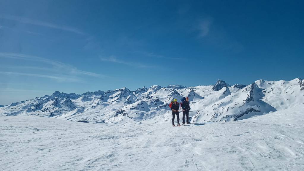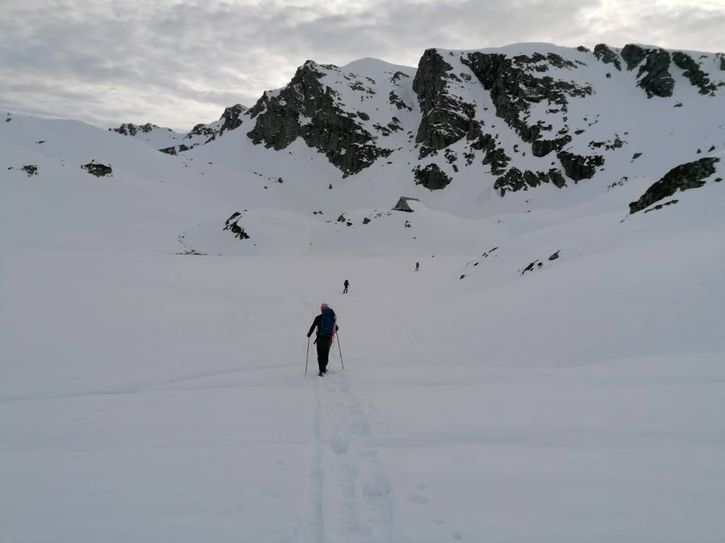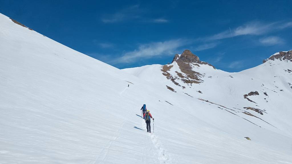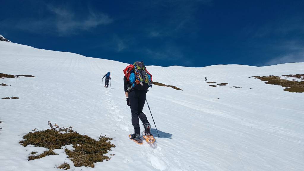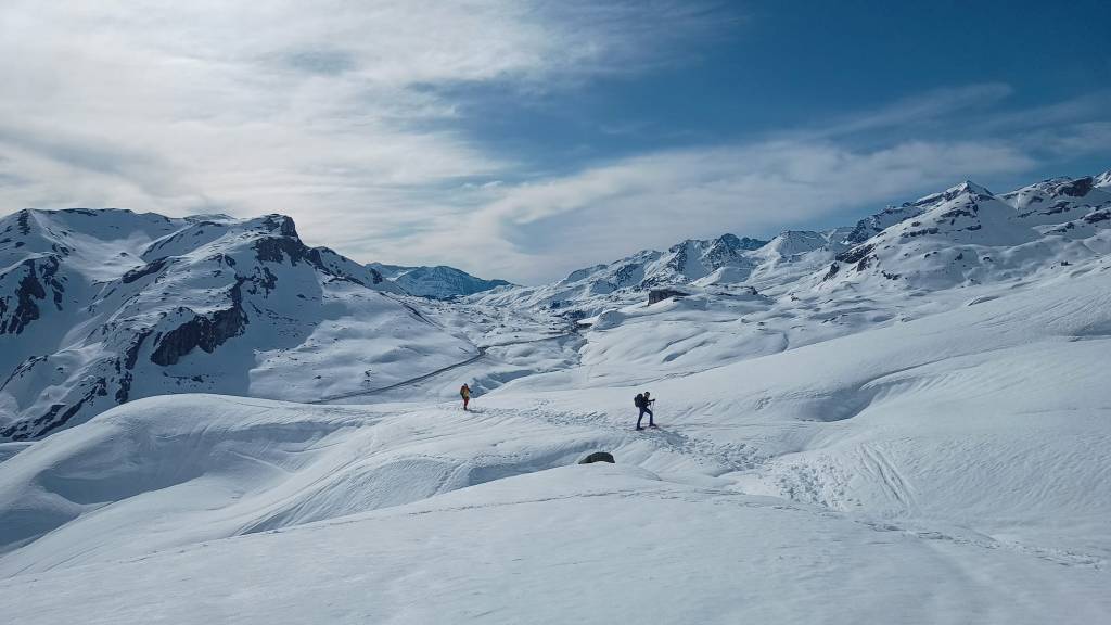 Después de varios retrasos por la sucesión de frentes coincidentes con los fines de semana, por fin se abrió la ventana de oportunidad para aventurarnos en el Tour al Midi D’Ossau en condiciones invernales. ¡Y qué condiciones! No nos quitamos las raquetas o los esquís de montaña en los dos días de ruta.