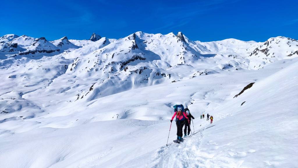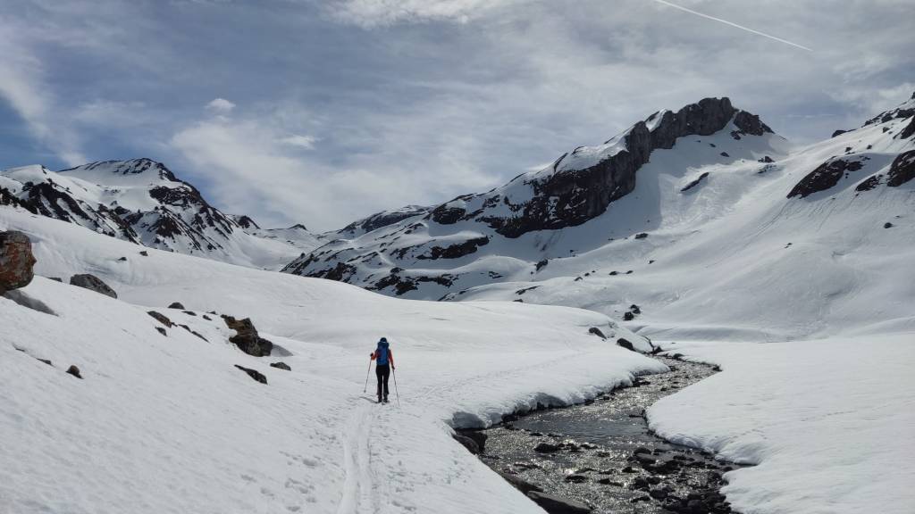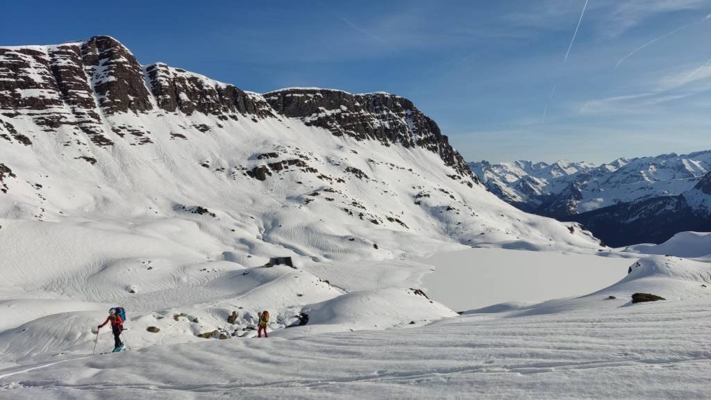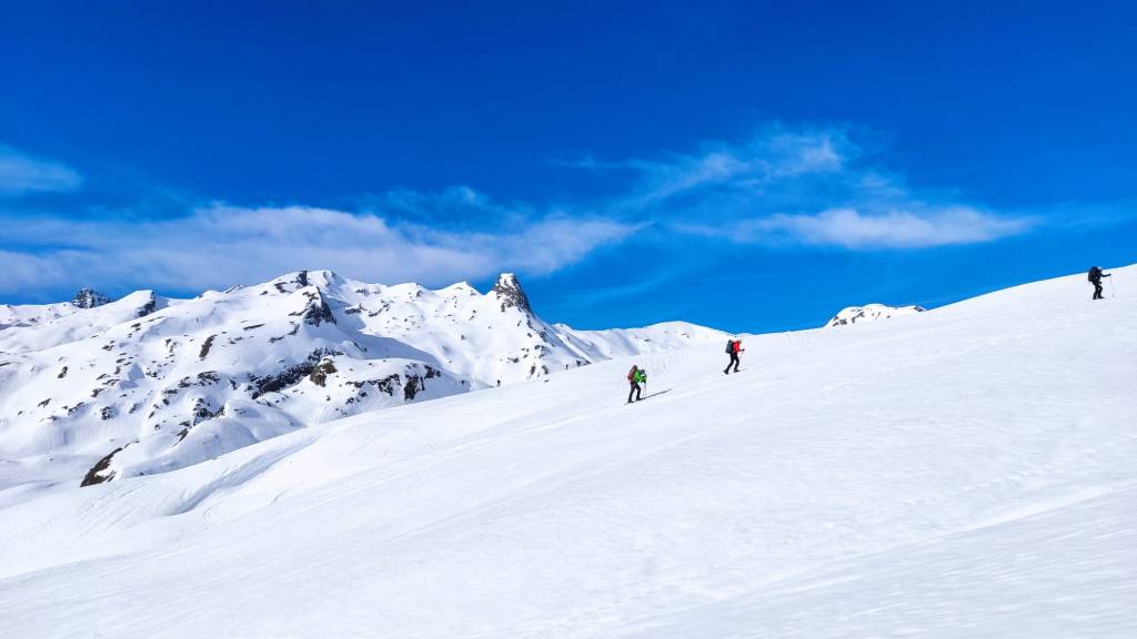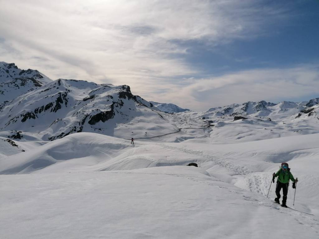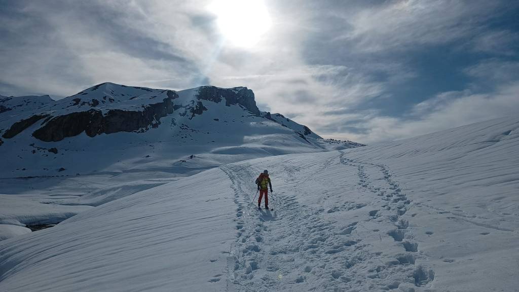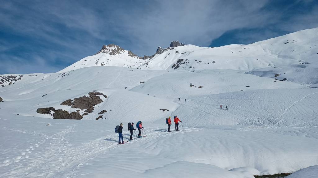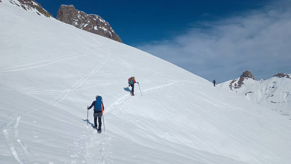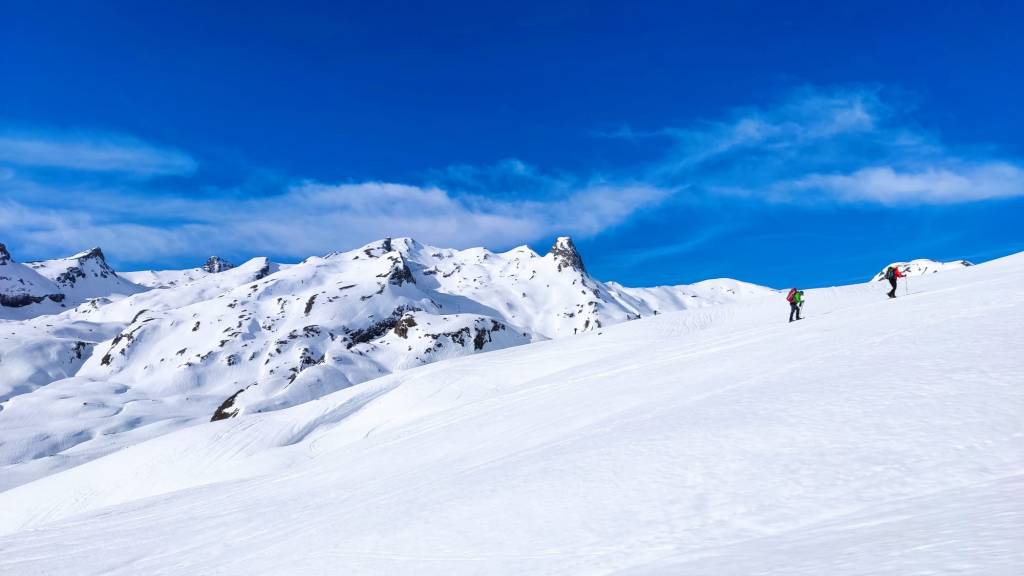 Después de varios retrasos por la sucesión de frentes coincidentes con los fines de semana, por fin se abrió la ventana de oportunidad para aventurarnos en el Tour al Midi D’Ossau en condiciones invernales. ¡Y qué condiciones! No nos quitamos las raquetas o los esquís de montaña en los dos días de ruta.