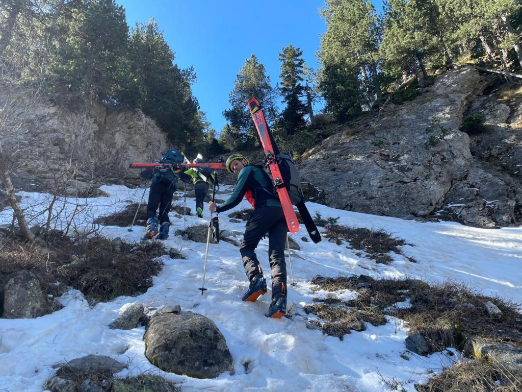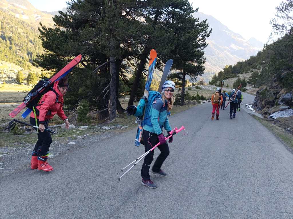 Poco despues de pasar La Renclusa tocó descalzarse las tablas y un laaaaargo porteo hasta los Llanos del Hospital donde finalizamos la actividad bajo la luz de nuestros frontales.